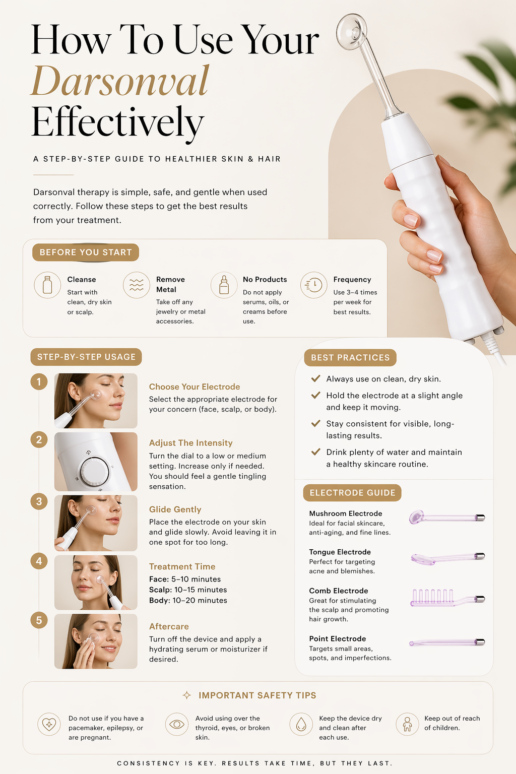 A darsonval is a high-frequency device used in skincare to treat various skin conditions. It works by delivering a mild electrical current through glass electrodes, promoting blood circulation, reducing inflammation, and enhancing skin health.